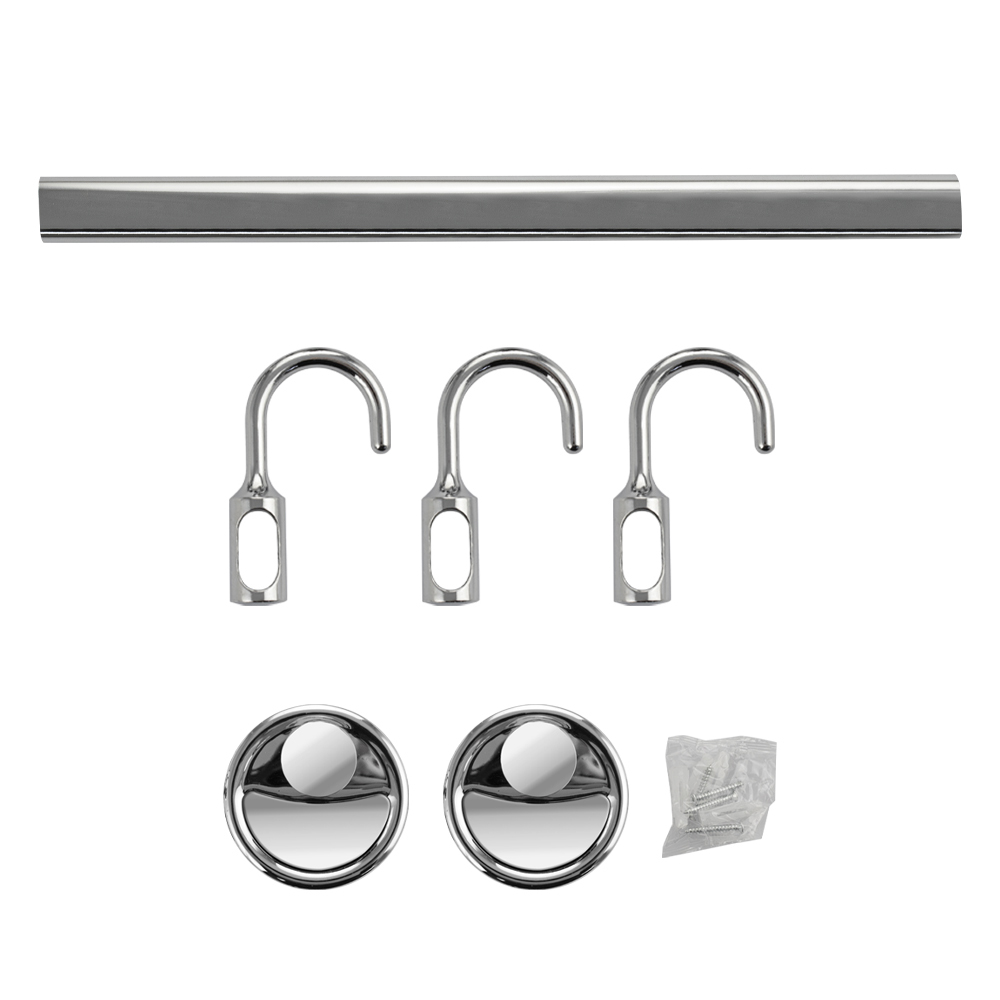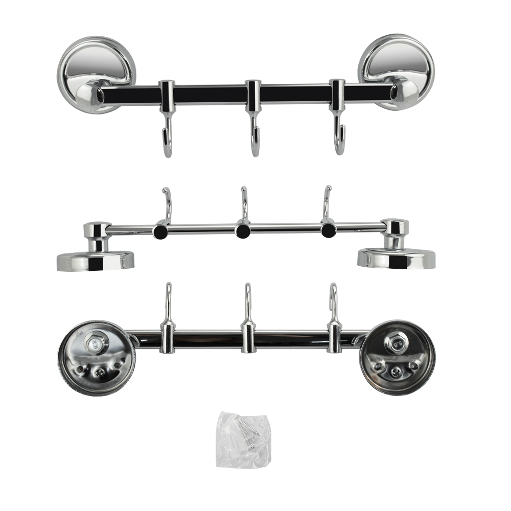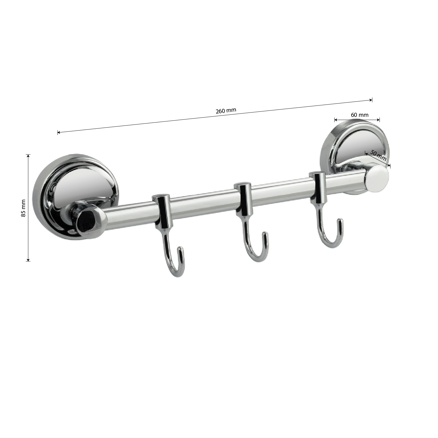 Держатель для полотенец металлический, хромированный, с тремя подвижными крючками. Материал изготовления — ЦАМ (цинк-алюминий-медь). Хромированное покрытие очень стойко переносит истирания и обеспечивает зеркальный блеск изделия. На держателе с легкостью можно размещать вещи для сушки или вешать, как полотенца, так и одежду перед походом в душ. Идеально подойдет не только для ванной, но и для кухни, а также для дачи или гаража - при необходимости на держатель можно вешать любые предметы. Изделие крепится к стене с помощью дюбелей и саморезов (входят в комплект). Габаритные размеры: длина 260 мм, диаметр посадочного седла 60 мм, глубина 50 мм, высота 85 мм. Вес - 0,300 кг, объём - 0,00076 м3Характеристики