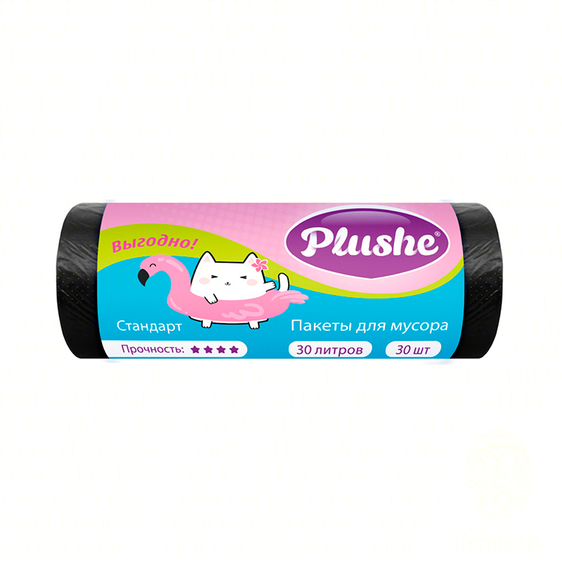 Мешки для мусора Plushe ПНД 30 литров, 30 штук в рулоне, Стандарт (Standart), чёрные, 64 рулона в коробе